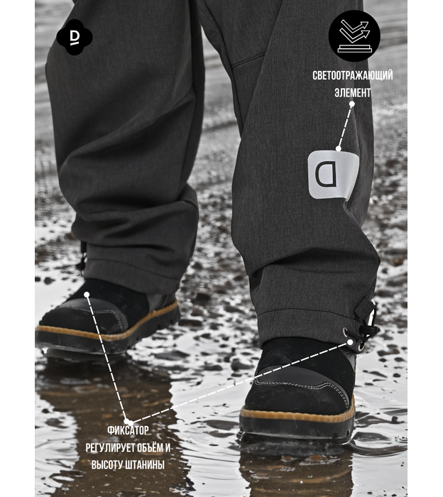 Брюки, Весна-Осень, SoftShell, ГРАФИТ МЕЛАНЖ арт. 801С