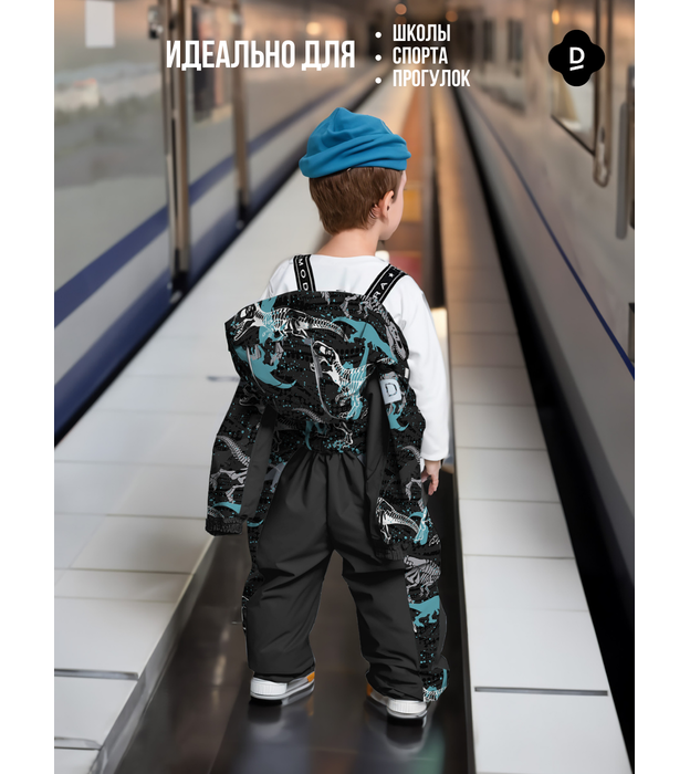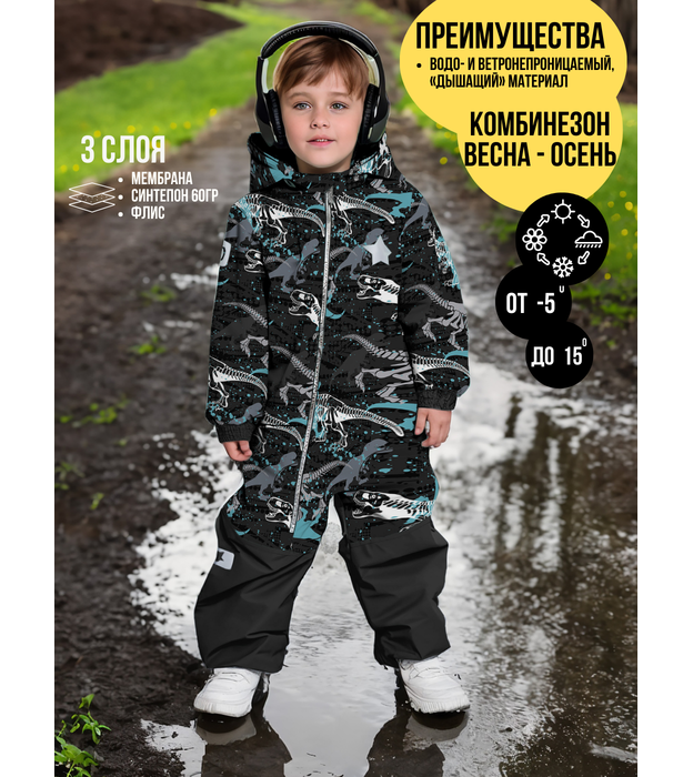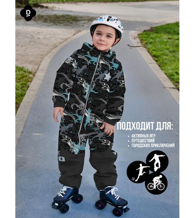 Комбинезон, Весна-Осень, Цвет №23 Бирюзовые динозавры , арт. 237Ф
