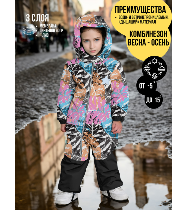 Комбинезон, Весна-Осень, Цвет №3 Серо-голубые листья, арт. 237Ф