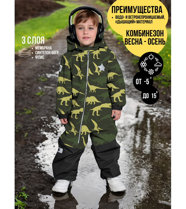 Комбинезон, Весна-Осень, Цвет №30 Дино зеленый , арт. 237Ф