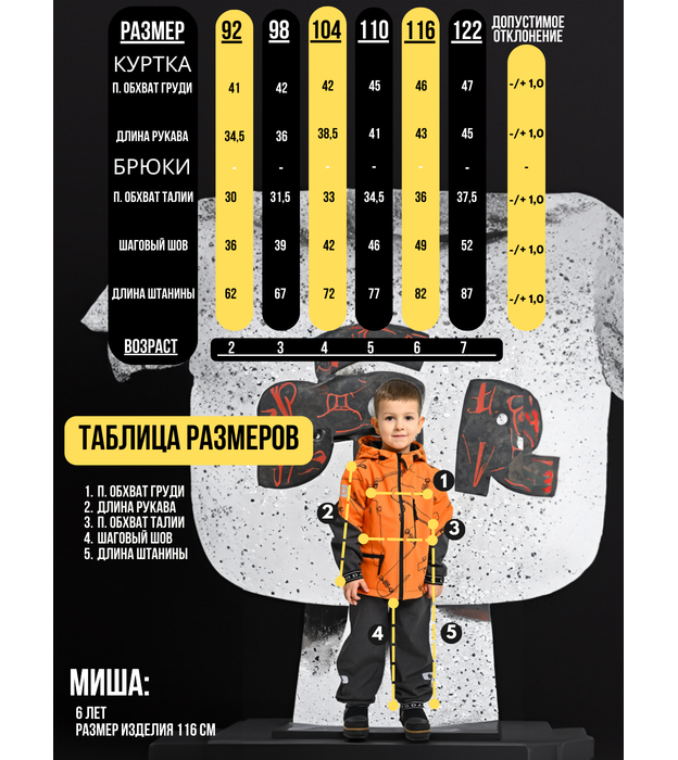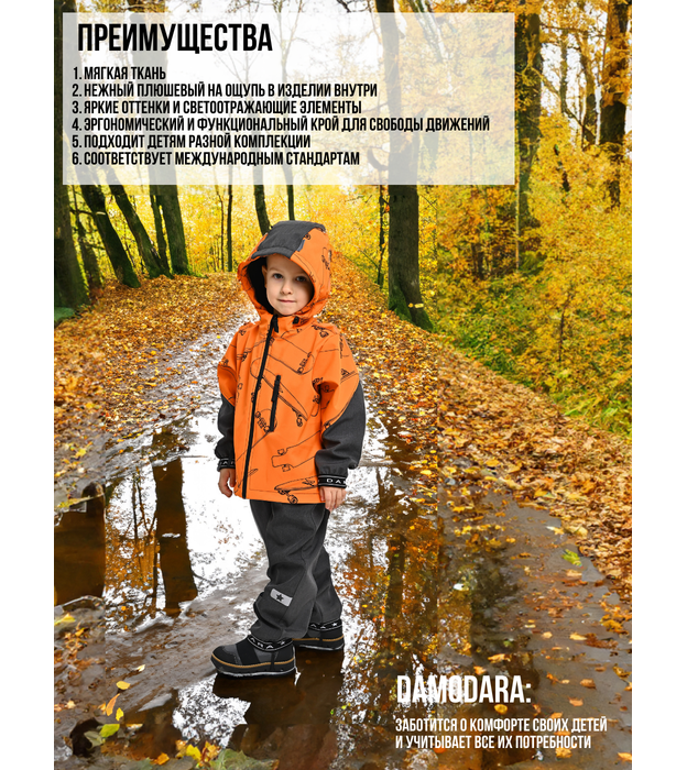 Весенний костюм состоит из куртки и брюк и отлично подходит для повседневной носки и активного отдыха в школе. Демисезонный комплект ветрозащитный, непромокаемый и воздухопроницаемый костюм из материала софтшелл. Теплый осенний костюм идеально подходит для повседневной носки в садике и школе, для активного отдыха как для мальчиков, так и для девочек. Костюм для межсезонья подойдет для путешествий и поездок. Весенний костюм подходит для прохладной погоды. Костюм из болоньи подходит для туризма, прогулок и походов. Водонепроницаемый и ветрозащитный материал софтшелл гарантирует комфорт при такой изменчивой весенней и осенней погоде. Комфортная температура софтшелла от -5 до +15 градусов, но все зависит от индивидуальных особенностей теплового обмена тела ребенка. Внешний слой защищает от ветра, а внутренняя часть ткани отводит лишнюю влагу, обратная сторона материала софтшелл – флис, который легко стирается и удаляет загрязнения. На куртке есть накладные карманы на молнии со светоотражающими пуллерами, защитная планка и несъёмный капюшон. На брюках есть лямки (полукомбинезон). Такой теплый костюм гарантированно обеспечит максимальный комфорт при занятии любимыми увлечениями. Светоотражающие логотипы на куртке и брюках. Правильный уход за курткой включает бережную стирку при 30 градусах, запрет на глажку, отбеливание и химчистку. Для определения точного размера куртки в галерее фотографий есть таблица с измерениями готового изделия.