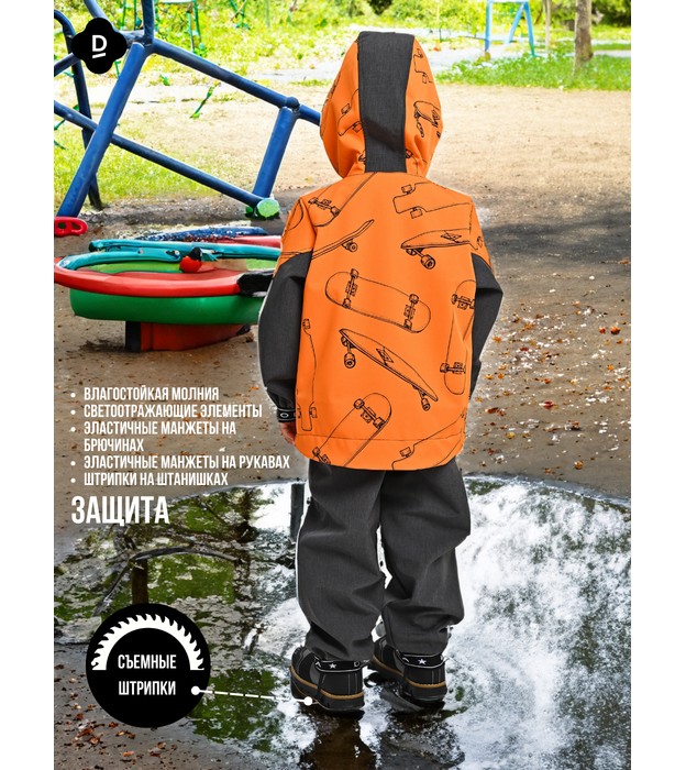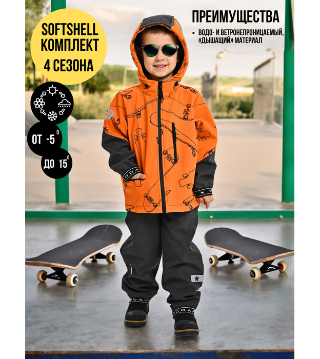 Комплект (Куртка+полукомбинезон), Весна-Осень, SoftShell, ОРАНЖЕВЫЕ СКЕЙТЫ арт. 420С