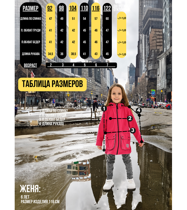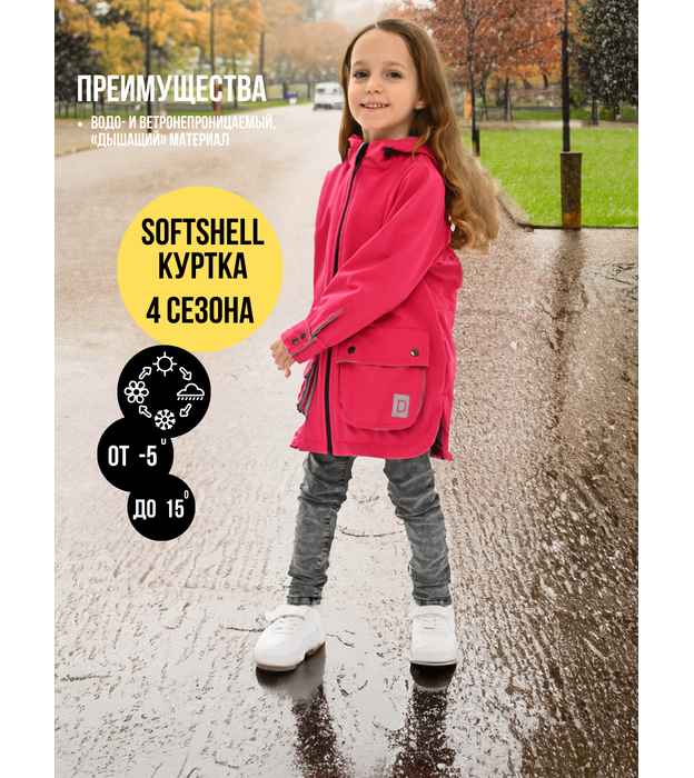 Демисезонная куртка из материала софтшелл станет отличным выбором для прогулок и активного отдыха на свежем воздухе. Этот материал отличается высокой прочностью и износостойкостью, а также обладает ветро- и водонепроницаемыми свойствами и хорошо сохраняет тепло. Мембрана с показателями 5000/5000 обеспечивает эффективный отвод влаги. Мы добавили светоотражающие элементы на рукавах, капюшоне, карманах и спинке куртки для безопасности в темное время суток. Капюшон с регулировкой фиксаторами защищает голову от ветра и дождя. Куртка имеет два глубоких кармана для хранения мелочей. Температурный режим куртки составляет от -5 до +15 градусов Цельсия, но следует учитывать индивидуальные особенности теплообмена ребенка, длительность прогулки и погодные условия. Правильный уход за курткой включает бережную стирку при 30 градусах, запрет на глажку, отбеливание и химчистку. Для определения точного размера куртки в галерее фотографий есть таблица с измерениями готового изделия.