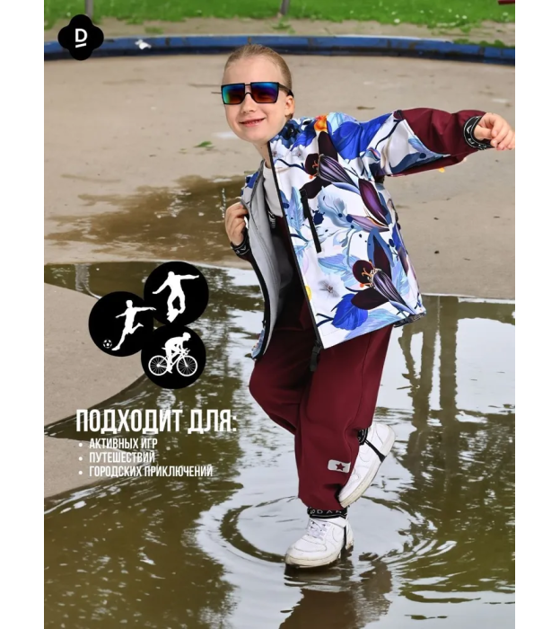 Куртка, Весна-Осень, SoftShell, ЦВЕТЫ НА БЕЛОМ арт. 705С