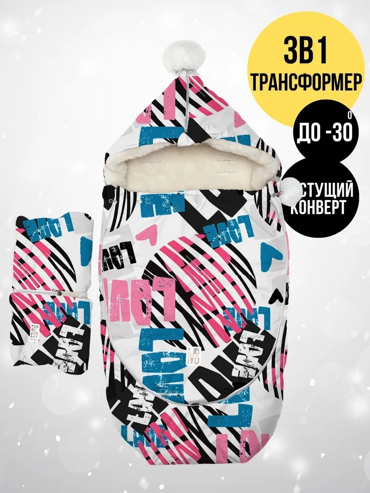 Конверт 2 в 1 + Муфта, Любовь розовая, арт.513Ш/1