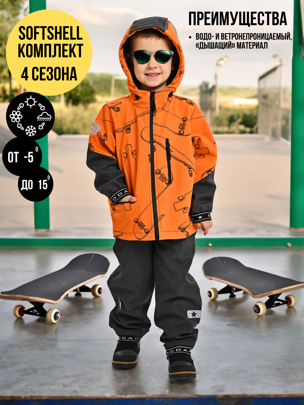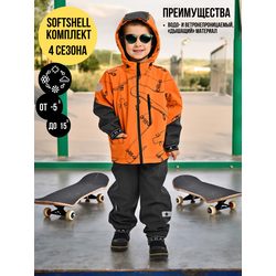 Комплект (Куртка+полукомбинезон), Весна-Осень, SoftShell, ОРАНЖЕВЫЕ СКЕЙТЫ арт. 420С