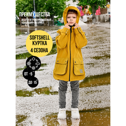 Куртка удлиненная , Весна-Осень, SoftShell, ГОРЧИЧНЫЙ арт. 701С