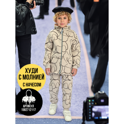 Худи дракончик, Футер, Мишки на бежевом, арт. 704Ф