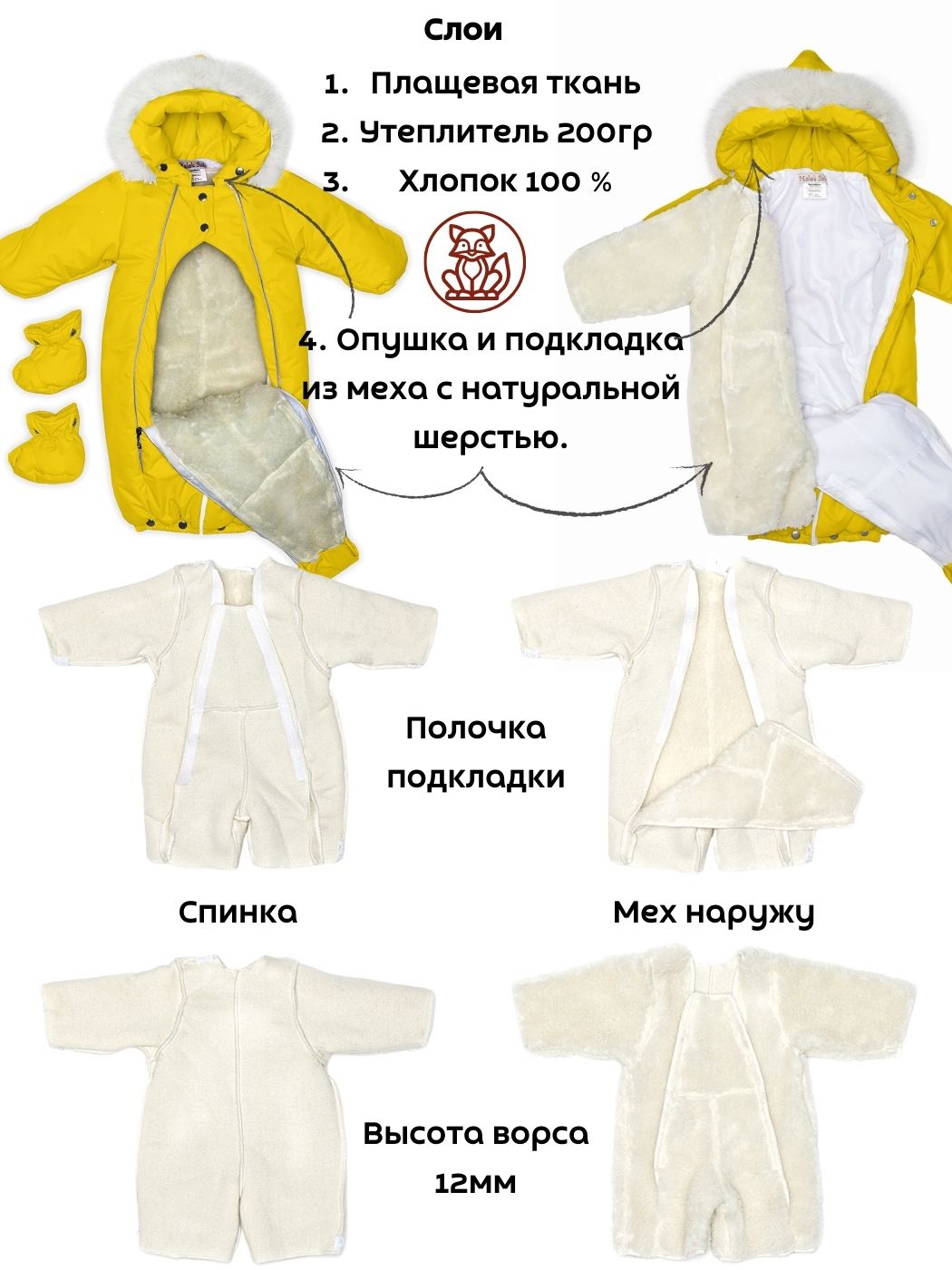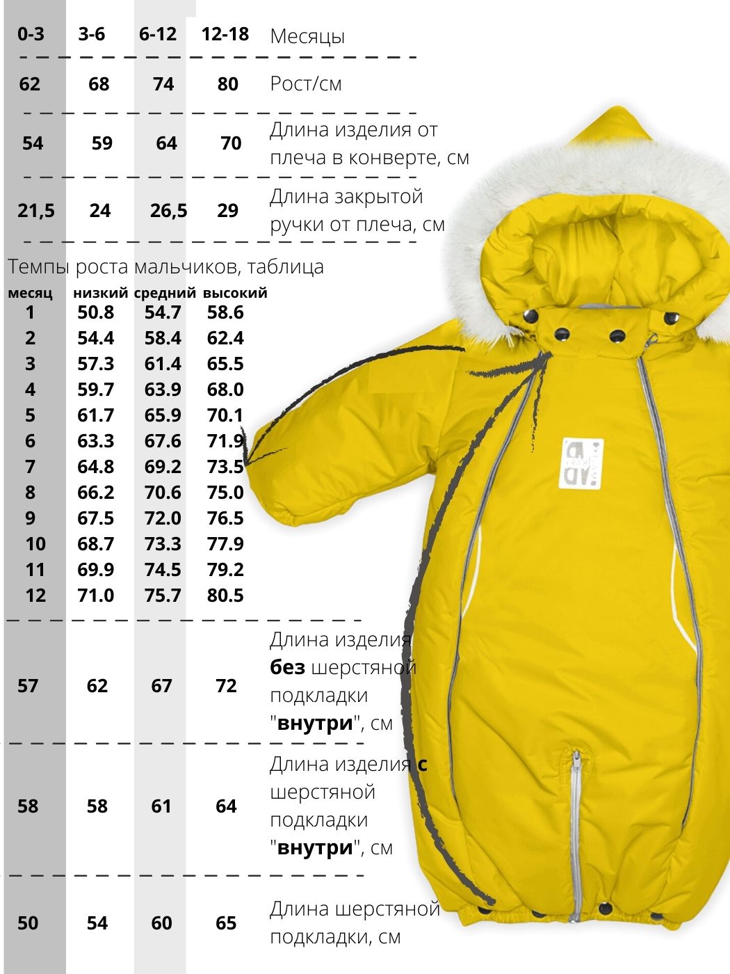Комбинезон-конверт "трансформер", Желтый, 163шм/2