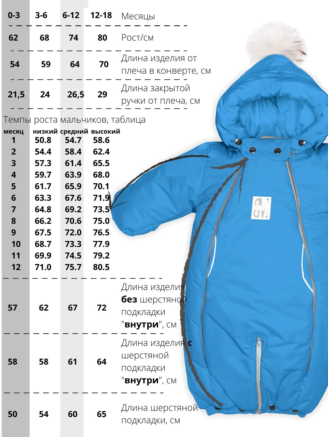Комбинезон-конверт "трансформер", Небесный, 163шм/1