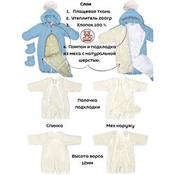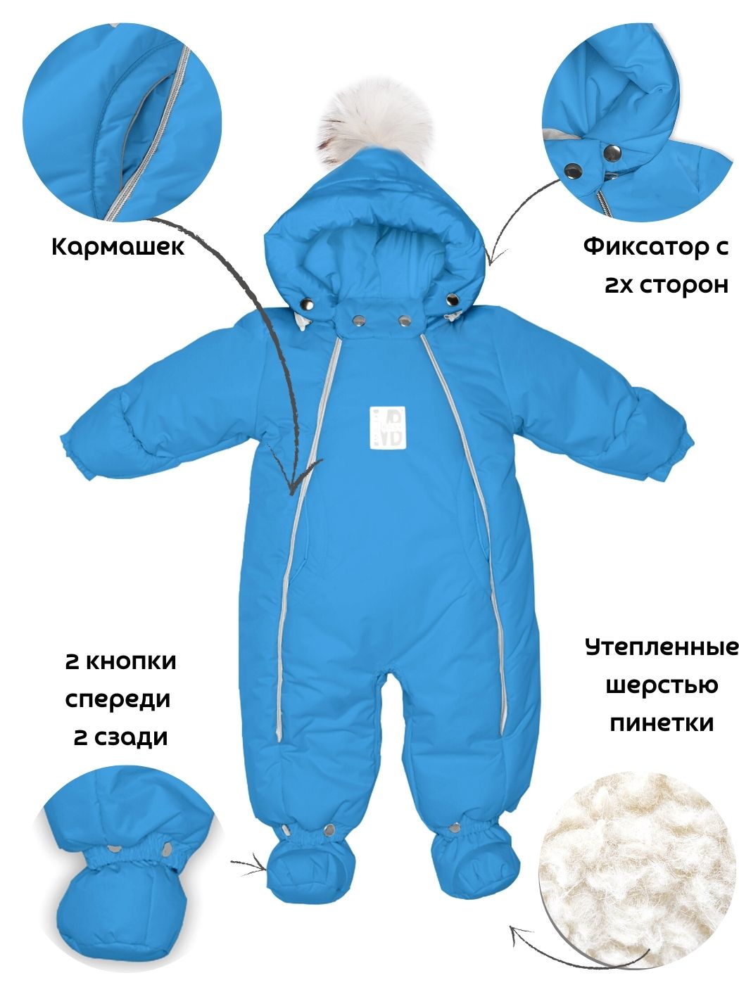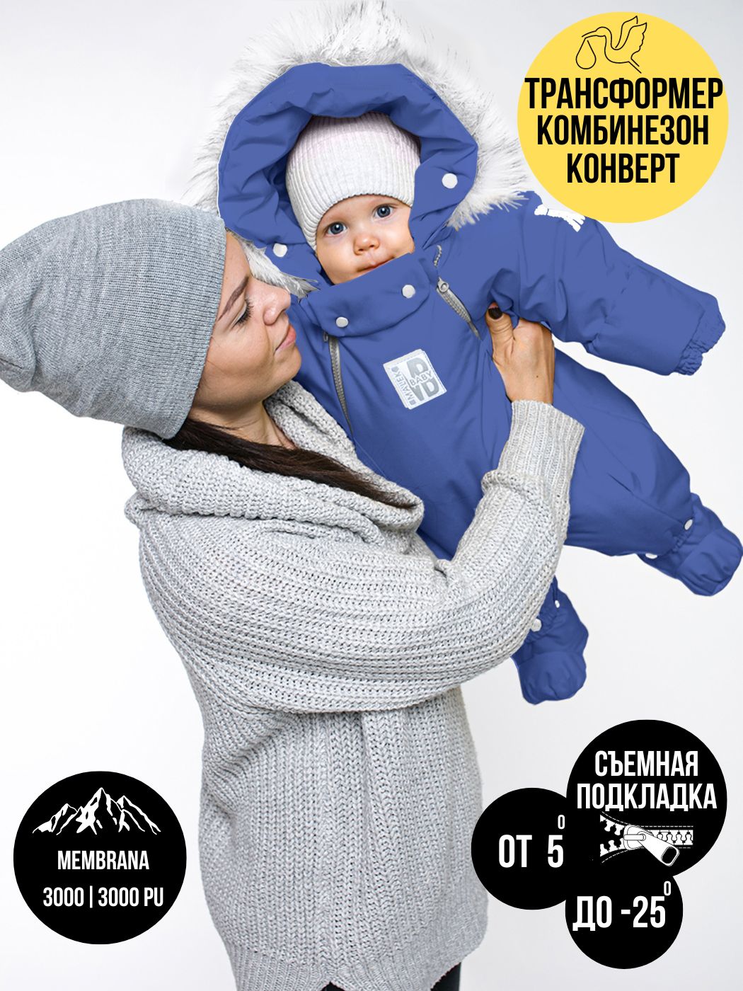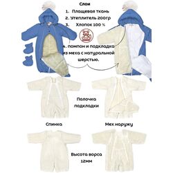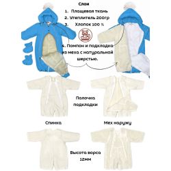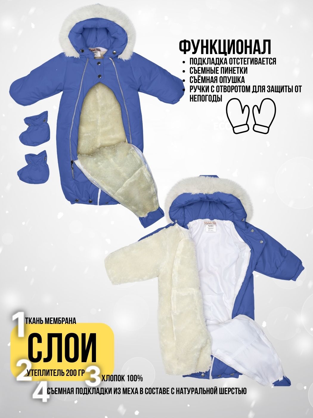 Комбинезон-конверт "трансформер", с опушкой, Синий 163шм/2