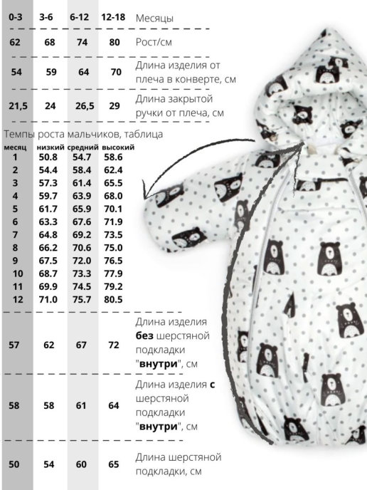 Комбинезон-конверт "трансформер", Медведь в горох на белом, арт.163шм/2