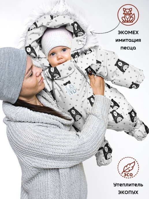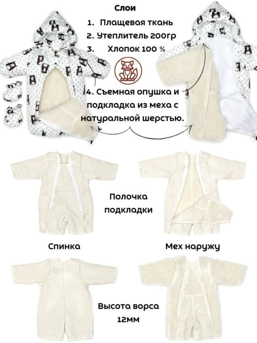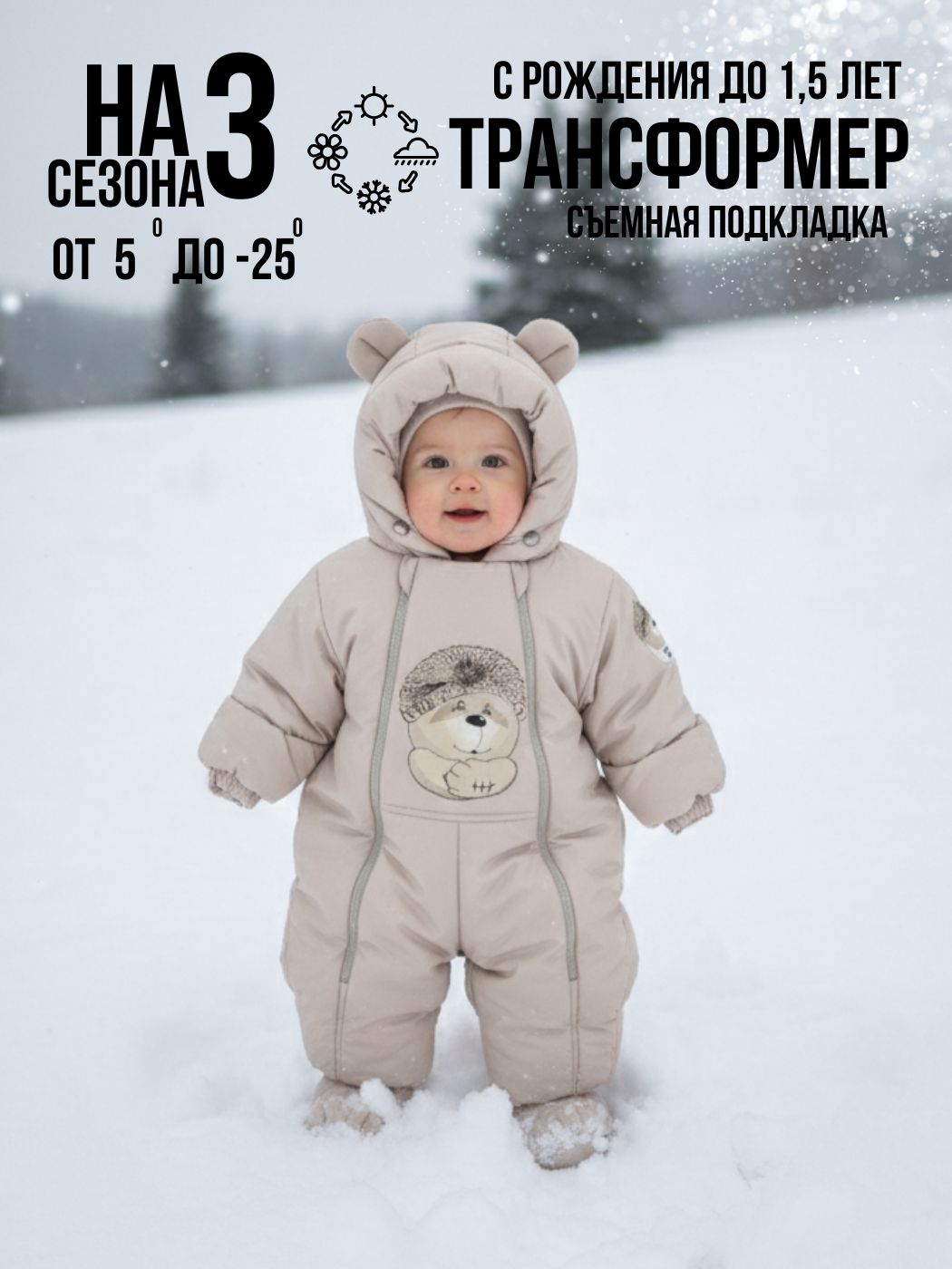 Комбинезон-конверт "трансформер", Зима,подклад с содер. шерсти отстёг. Сливки медведь ,арт. 167шм
