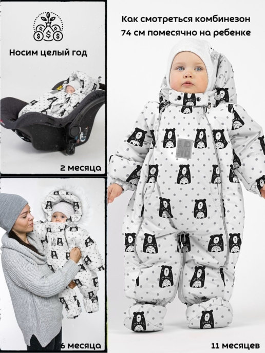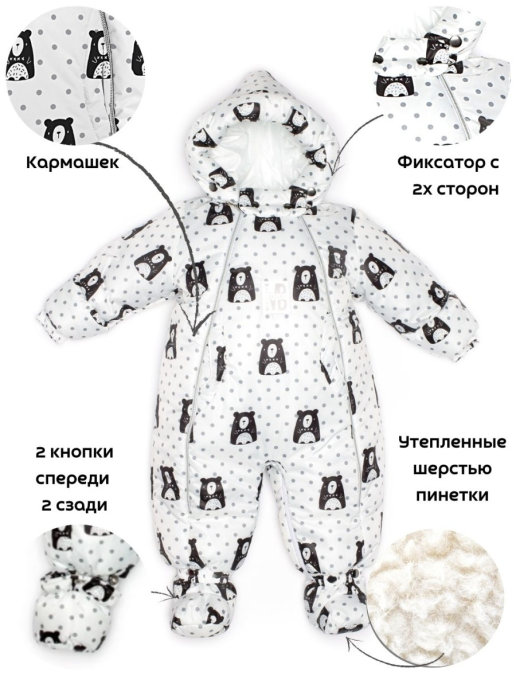 Комбинезон-трансформер, Мишки на белом, 137шм/2