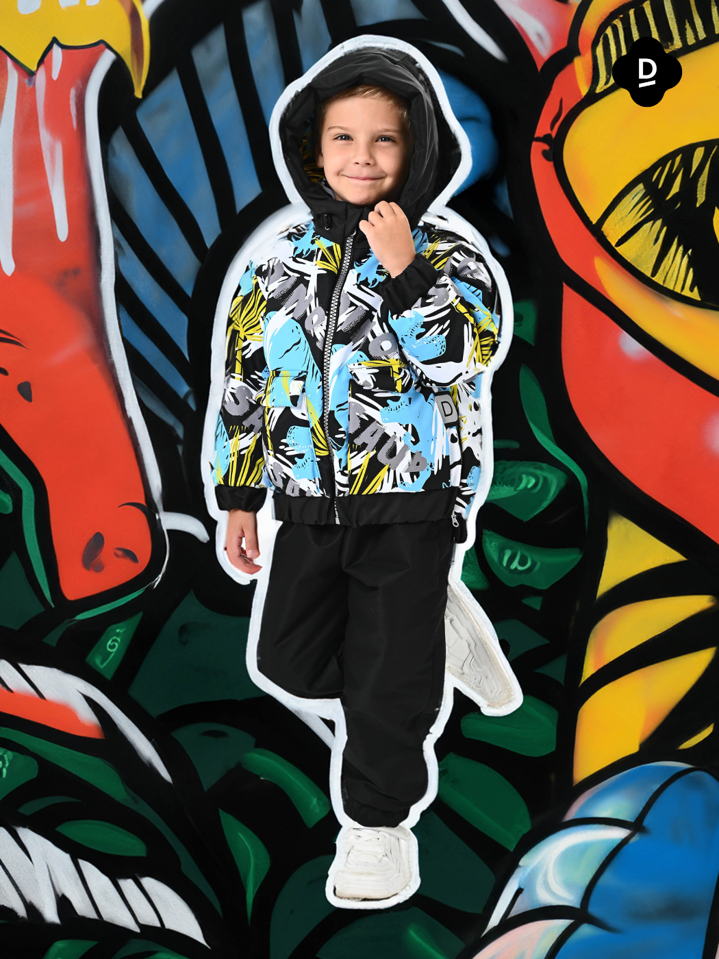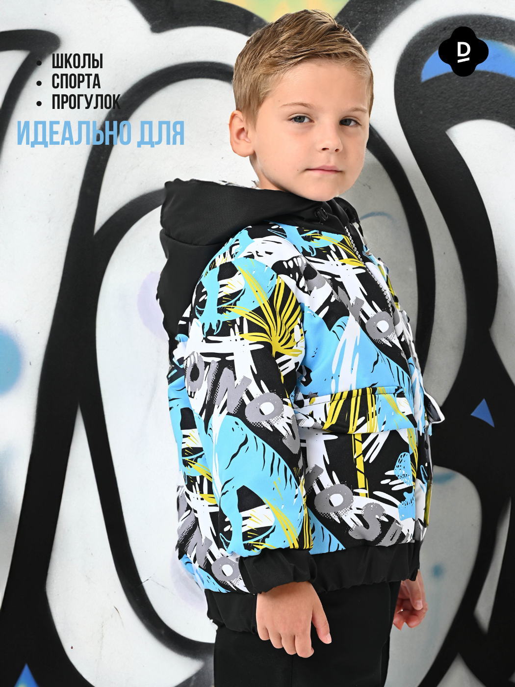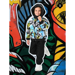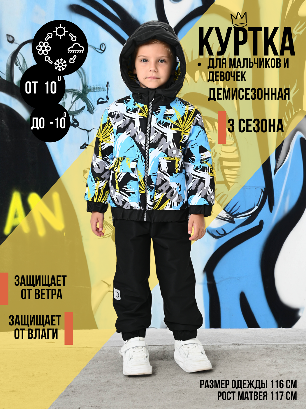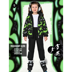 Куртка, Весна-Осень, Черный+Желто-бирюзовые фигуры арт. 706