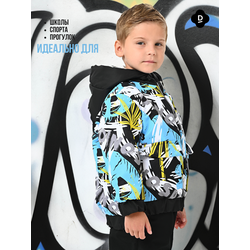 Куртка, Весна-Осень, Черный+Разноцветные листья арт. 706
