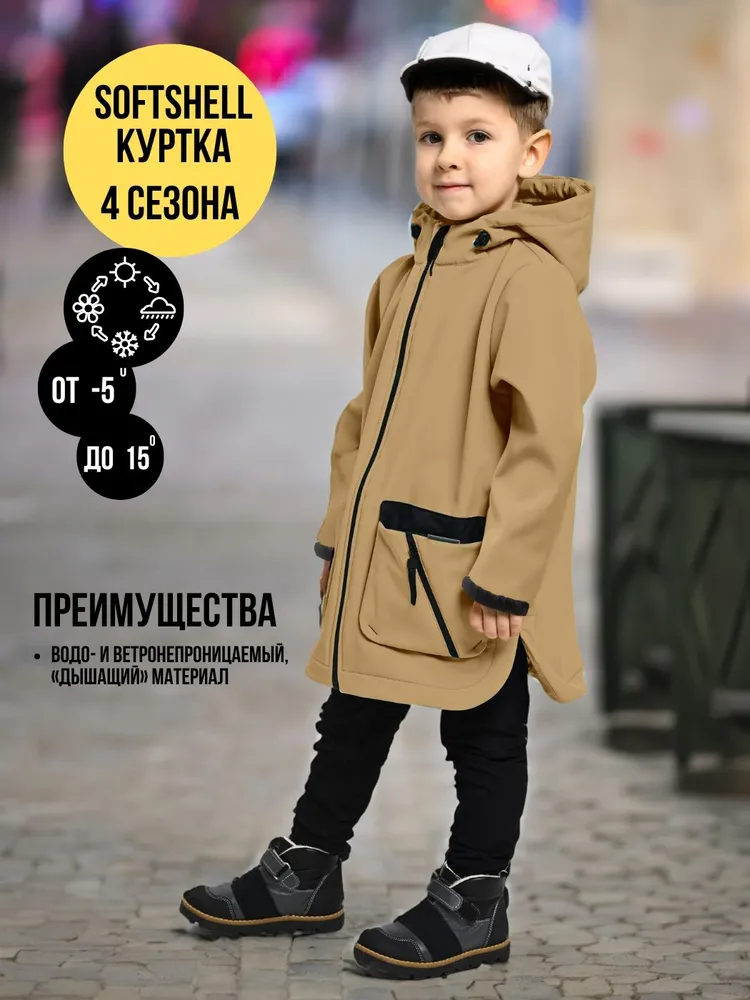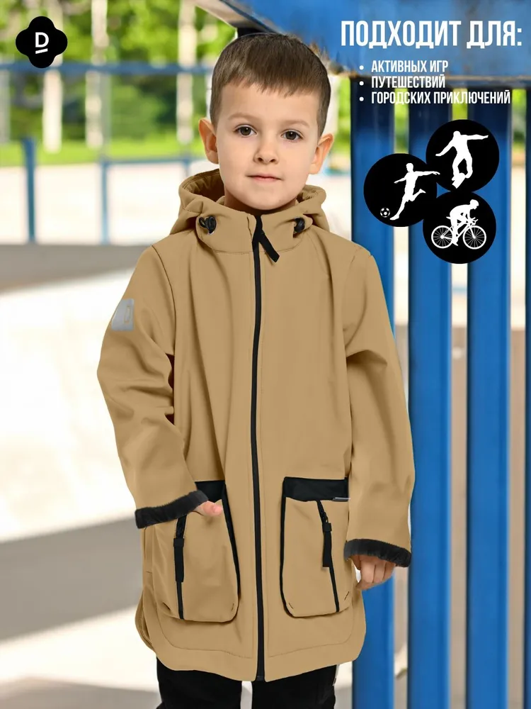 Куртка удлиненная , Весна-Осень, SoftShell, ПЕСОЧНЫЙ арт. 703С