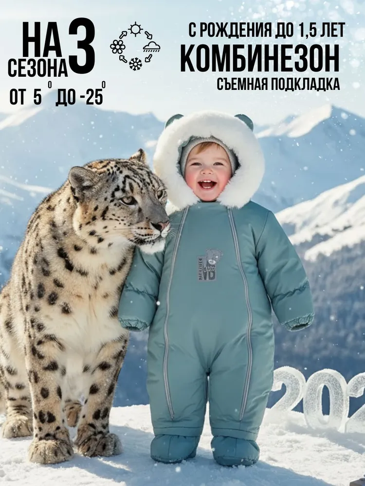 Комбинезон, Зеленый чай опушка леопард арт. 271шм/2
