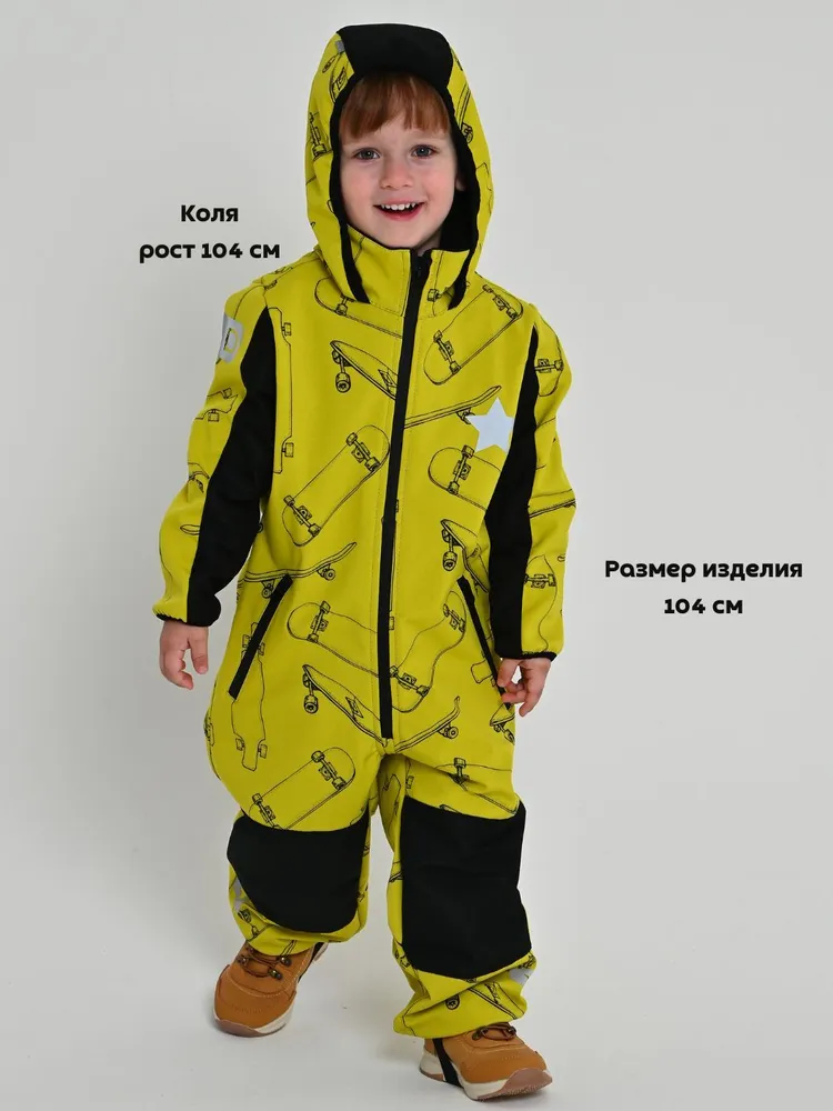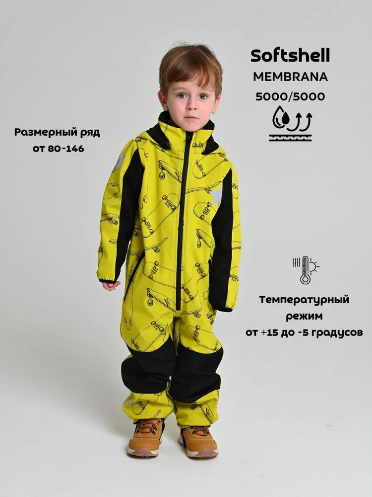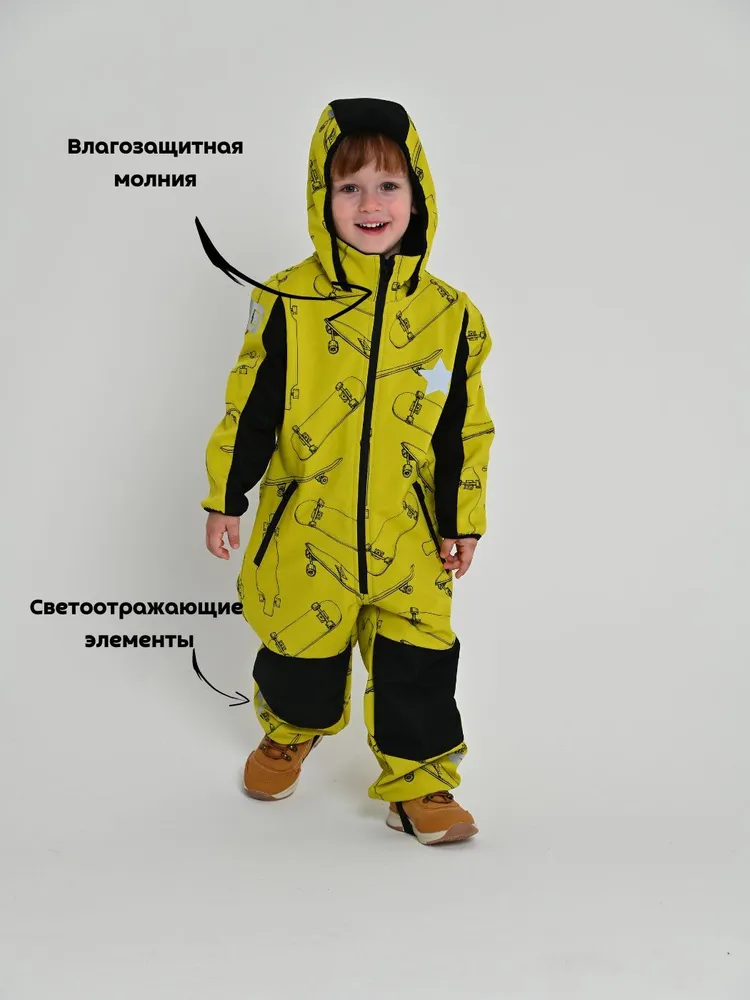 Комплект принт (куртка+брюки), Весна-Осень, SoftShell, Желтый Скейт арт. 420