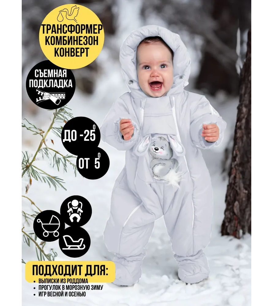 Комбинезон-конверт "трансформер", Зима, Светло-серый арт.147шм
