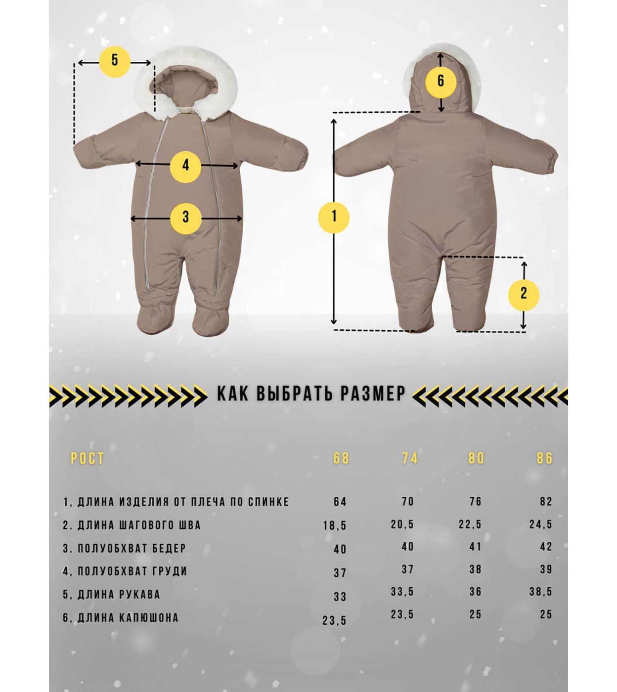 3. Отвороты на манжетах комбинезона делают варежки излишними - они надежно защищают ручки от холода.