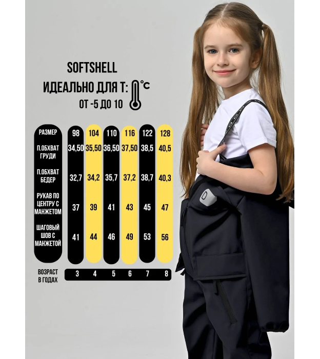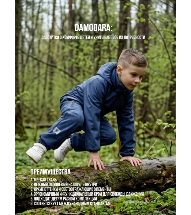 Перед Вами лучший демисезонный мембранный комбинезон из ткани softshell на весну и осень. Легкий и дышащий, но при этом прекрасно сохраняющий тепло. Темп. режим от +5 до +20 (в зависимости от нижнего слоя). 4 причины выбрать нас: 1. Высочайшие показатели мембраны 10к/5к. Наша ткань не даст ребёнку вспотеть. 2. Прочные усиленные наколенники из неопрена. Наше Ноу-Хау. Смягчает удары при падении, не пропускает воду, и совершенно не страдает от механических трений. Ползайте, сидите на коленях в мокром песке, падайте - с ними ничего не будет. 3. Идеальная по посадке модель. 4. Функциональные элементы: лямки на плечах для снятия комбеза в тепле, без полного раздевания, светоотражающие элементы, глубокий капюшон, вшивные прорезиненные штрипки, молния с аква и ветро защитой.