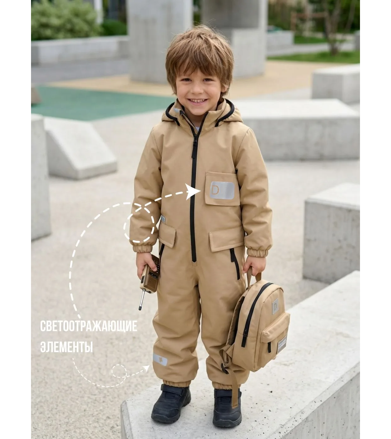Перед Вами лучший демисезонный мембранный комбинезон из ткани softshell на весну и осень. Легкий и дышащий, но при этом прекрасно сохраняющий тепло. Темп. режим от +5 до +20 (в зависимости от нижнего слоя). 4 причины выбрать нас: 1. Высочайшие показатели мембраны 10к/5к. Наша ткань не даст ребёнку вспотеть. 2. Прочные усиленные наколенники из неопрена. Наше Ноу-Хау. Смягчает удары при падении, не пропускает воду, и совершенно не страдает от механических трений. Ползайте, сидите на коленях в мокром песке, падайте - с ними ничего не будет. 3. Идеальная по посадке модель. 4. Функциональные элементы: лямки на плечах для снятия комбеза в тепле, без полного раздевания, светоотражающие элементы, глубокий капюшон, вшивные прорезиненные штрипки, молния с аква и ветро защитой.