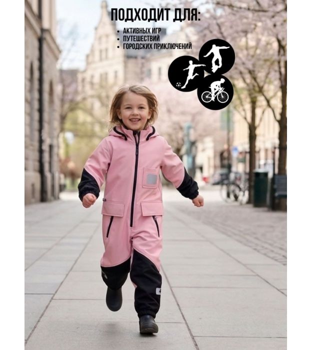 Комбинезон, Весна-Осень, SoftShell, Розовый фламинго арт. 210