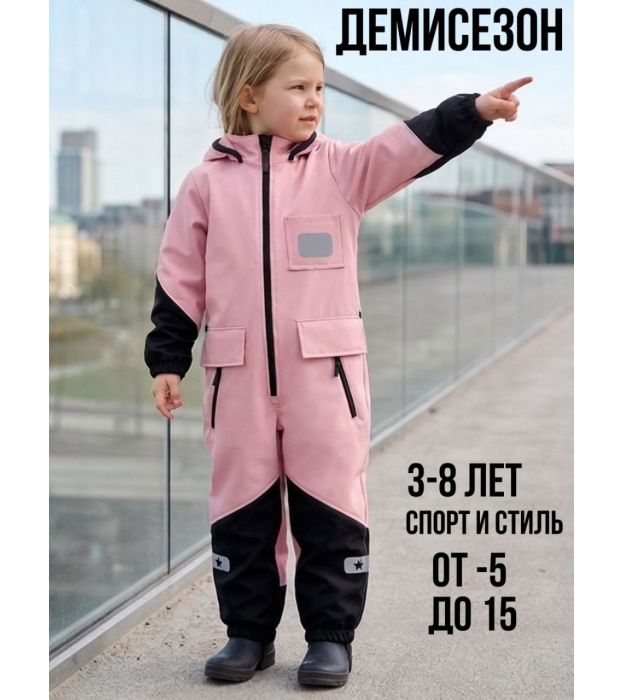 Комбинезон, Весна-Осень, SoftShell, Розовый фламинго арт. 210