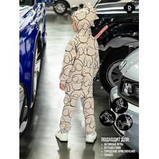 Худи дракончик, Футер, Мишки на бежевом, арт. 704Ф
