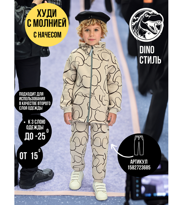 Худи дракончик, Футер, Мишки на бежевом, арт. 704Ф