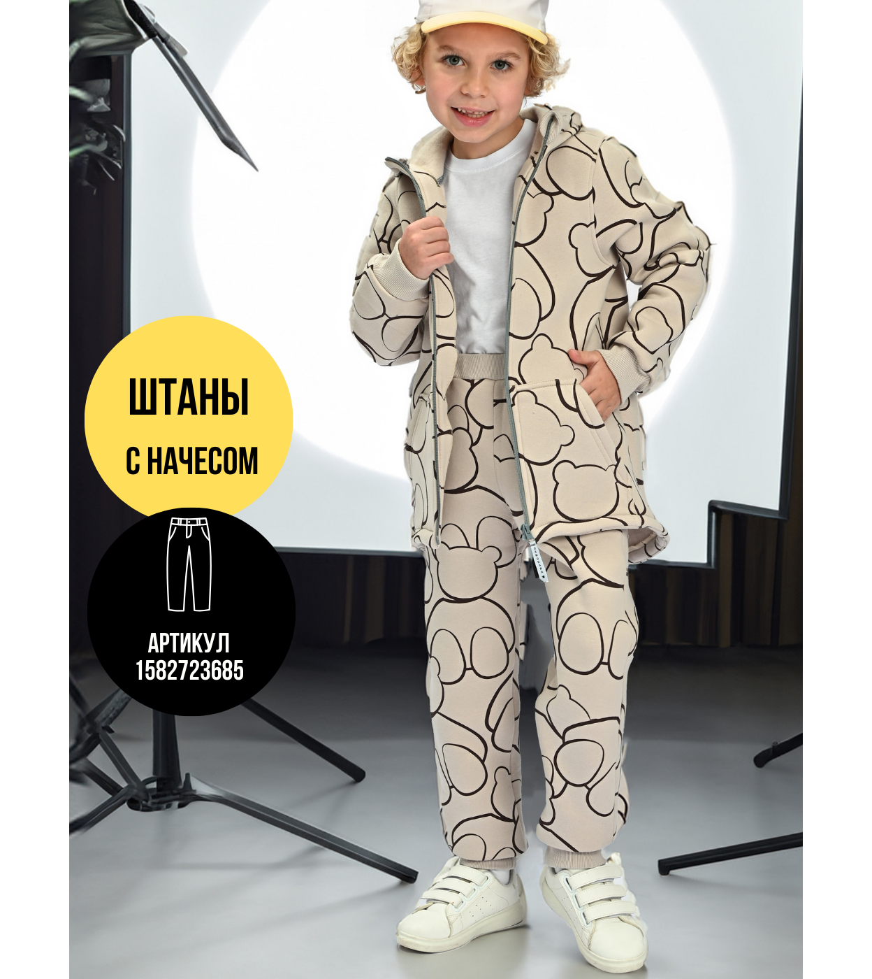 Худи дракончик, Футер, Мишки на бежевом, арт. 704Ф