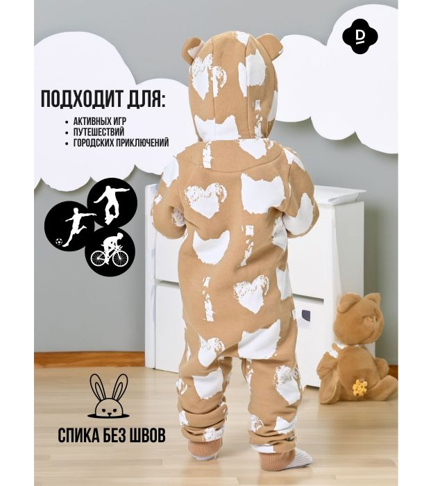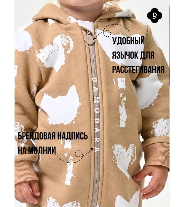 Фасон: комбинезон с капюшоном и длинной молнией — удобно надевать и снимать.