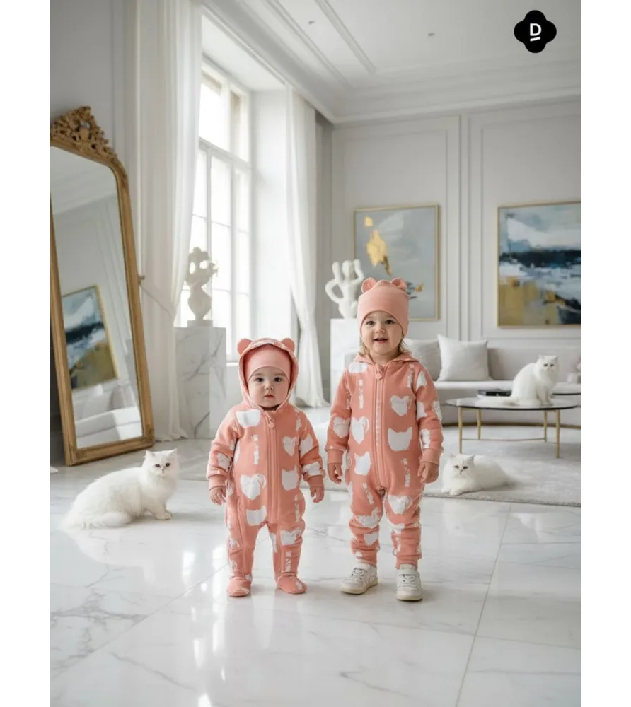 • Фасон: комбинезон с капюшоном и длинной молнией — удобно надевать и снимать.