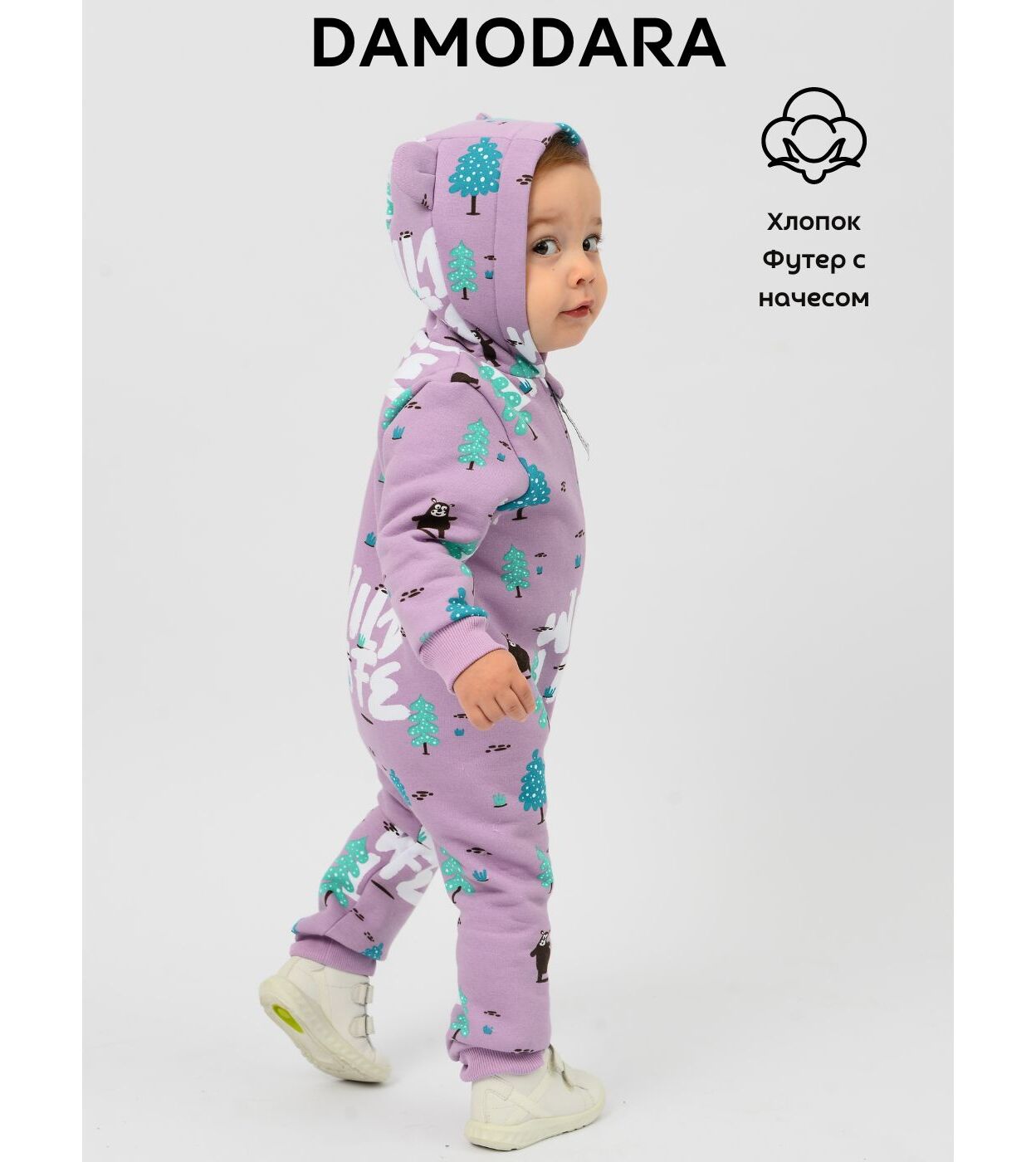 Комбинезон, Мишки елочки на сиреневом, арт. 02122