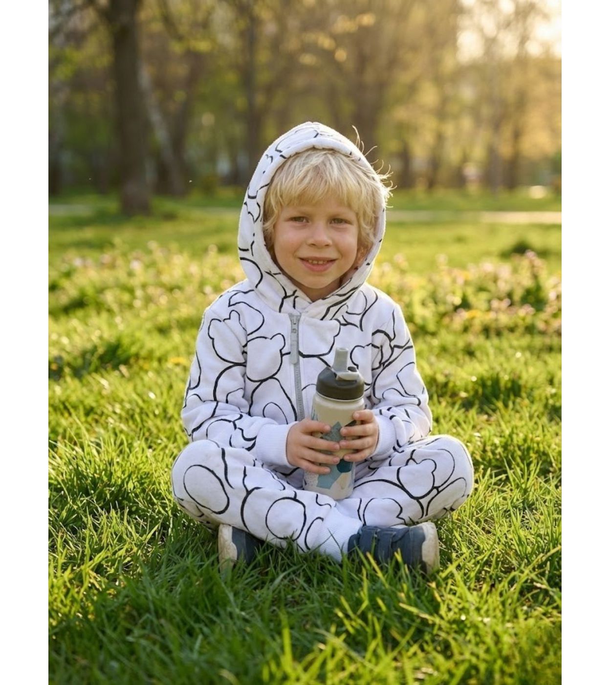 • Универсальный дизайн: модный принт "мишки на белом" — для мальчиков и девочек.
