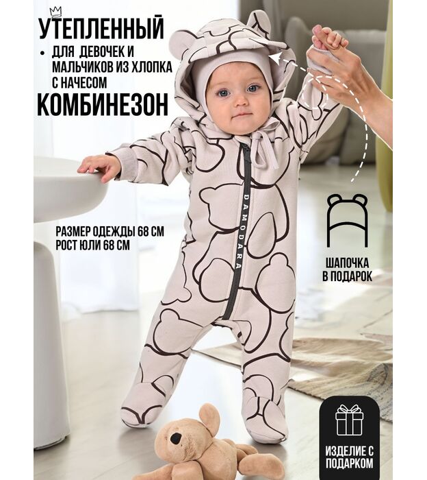Стильный и практичный детский комбинезон Malek Baby — это универсальная верхняя одежда для малышей на осень и зиму. Выполнен из плотного футера 3-нитка с начёсом (85% хлопок, 15% полиэстер), что обеспечивает тепло, мягкость и комфорт для нежной детской кожи. Отлично подходит для прогулок, сна и ежедневного использования дома или на улице.
