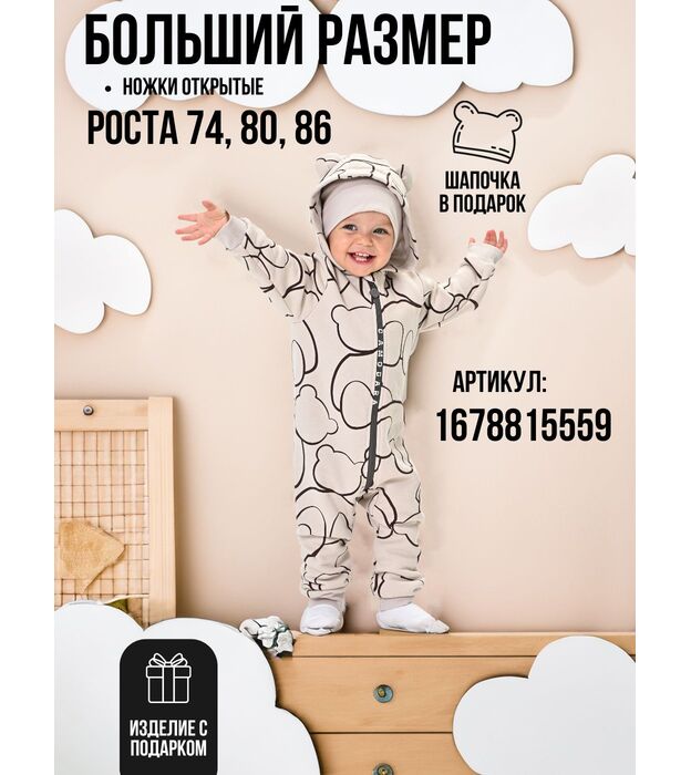 Комбинезон, Мишки на бежевом, арт. MB01124