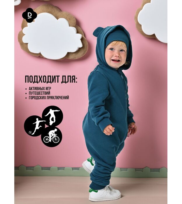 • Фасон: комбинезон с капюшоном и длинной молнией — удобно надевать и снимать.