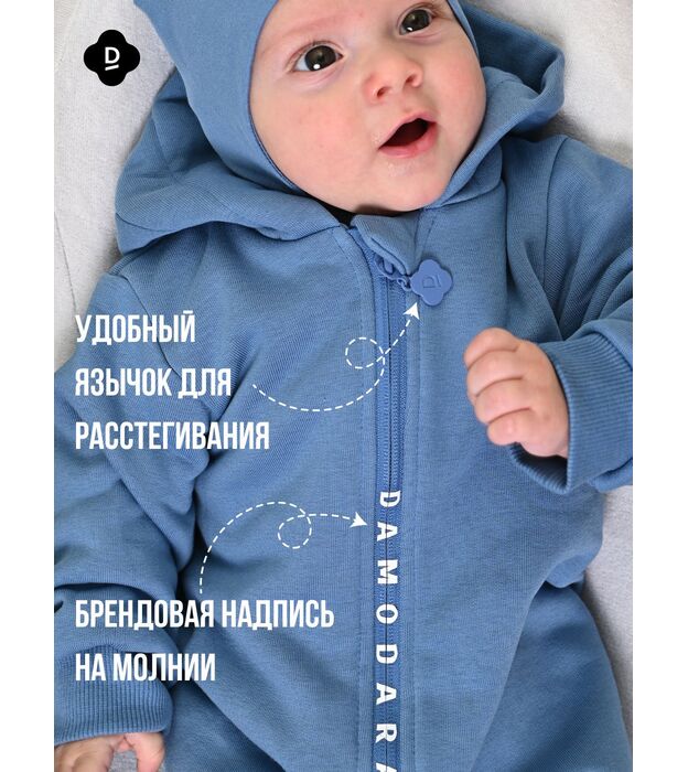 • Фасон: комбинезон с капюшоном и длинной молнией — удобно надевать и снимать.