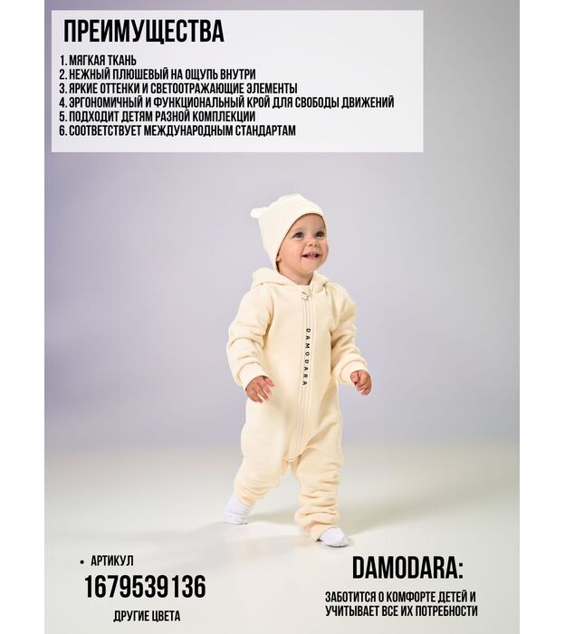 • Фасон: комбинезон с капюшоном и длинной молнией — удобно надевать и снимать.