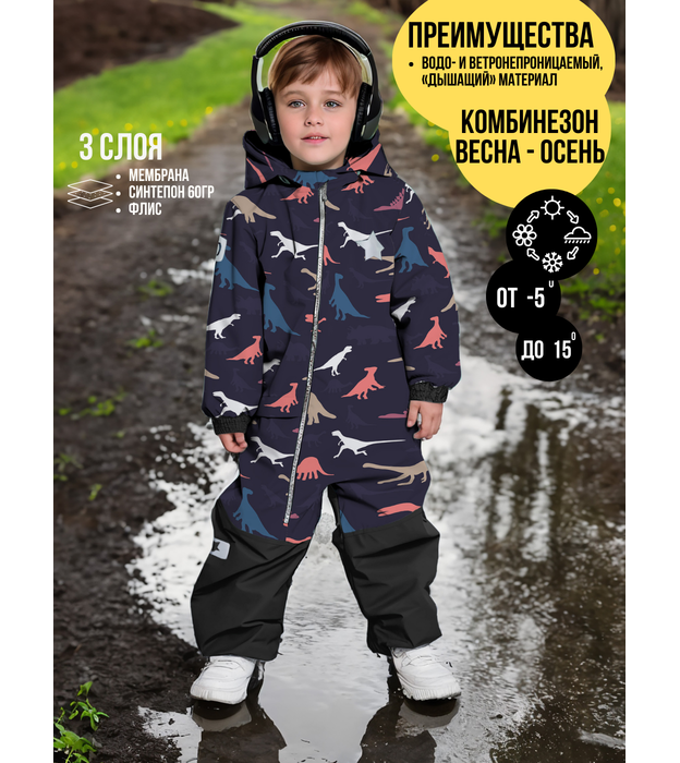 Комбинезон, Весна-Осень, Цвет №2 Дино на фиолетовом , арт. 237Ф