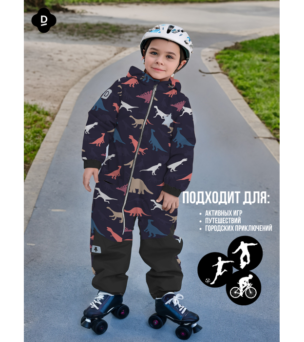 Комбинезон, Весна-Осень, Цвет №2 Дино на фиолетовом , арт. 237Ф