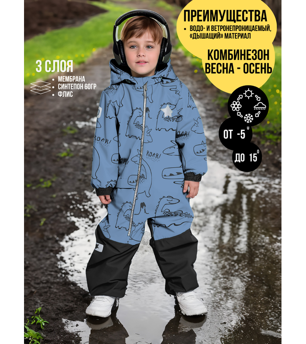 Комбинезон, Весна-Осень, Цвет №21 Дино синий, арт. 237Ф
