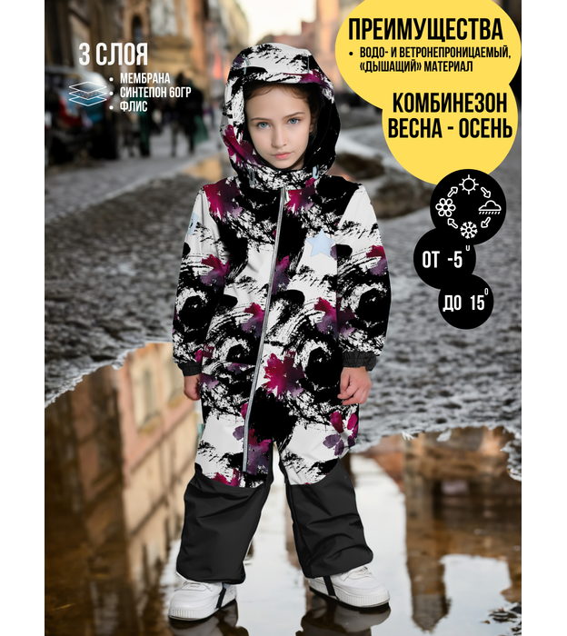Комбинезон, Весна-Осень, Цвет №4 Фиолетовые кляксы, арт. 237Ф