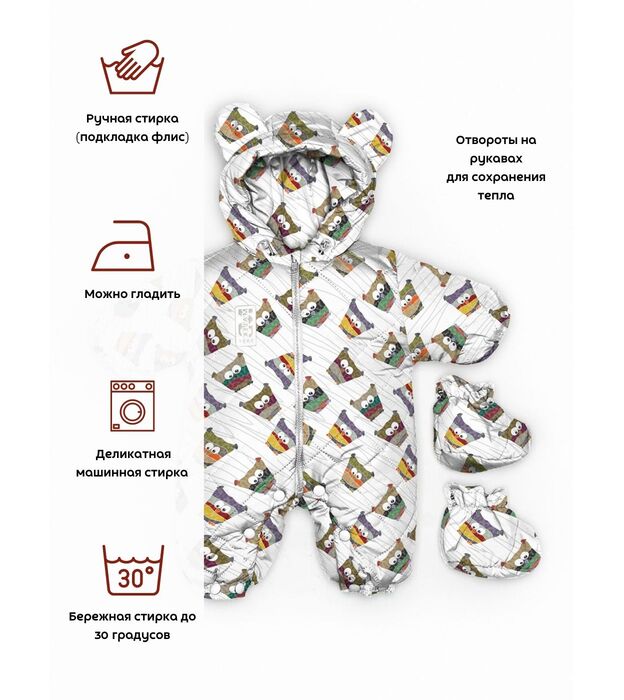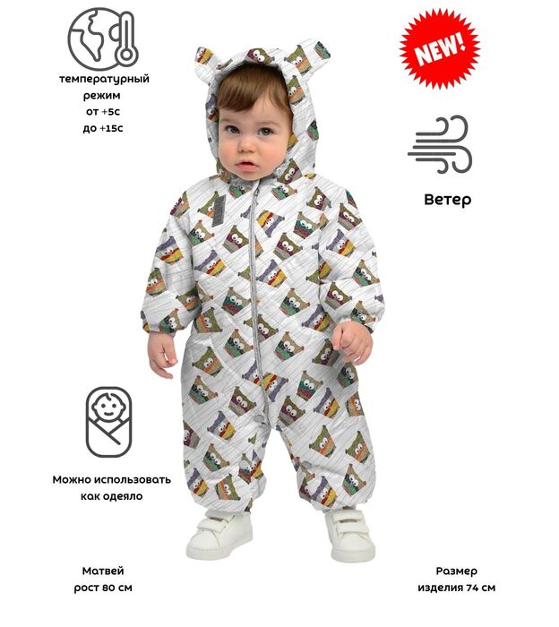Комбинезон, Весна-Осень, Совы на белом, арт.107Т