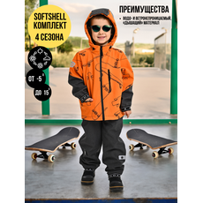 Комплект (Куртка+полукомбинезон), Весна-Осень, SoftShell, ОРАНЖЕВЫЕ СКЕЙТЫ арт. 420С