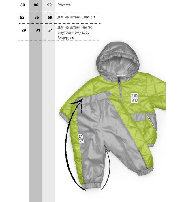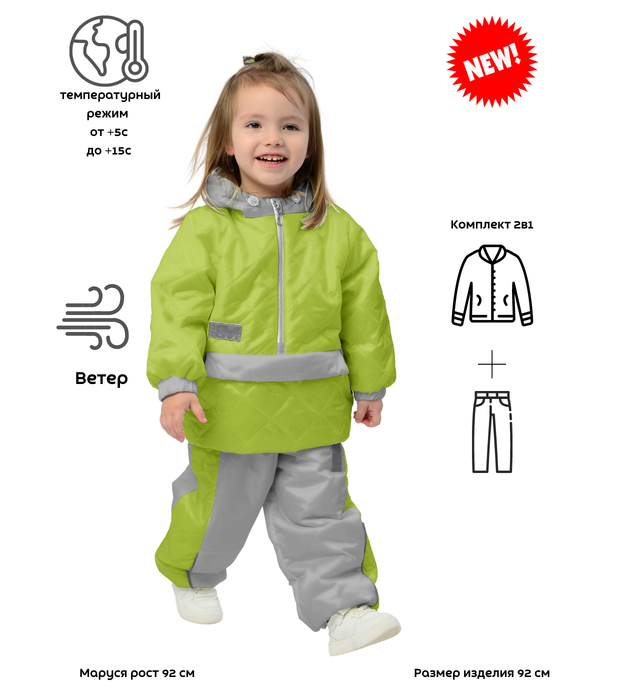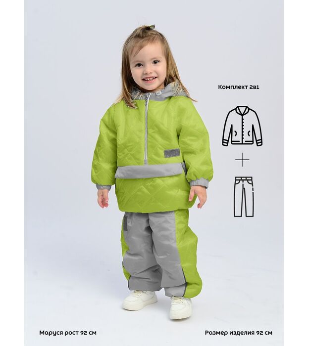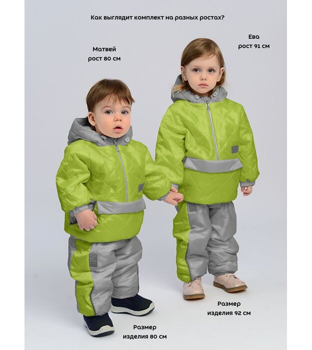 Комплект ( Куртка + брюки ), Демисезон, Неон салат+серый, арт. 417т