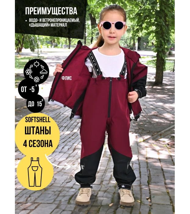 Полукомбинезон, Весна-Осень, SoftShell, Бургундия арт. 803С