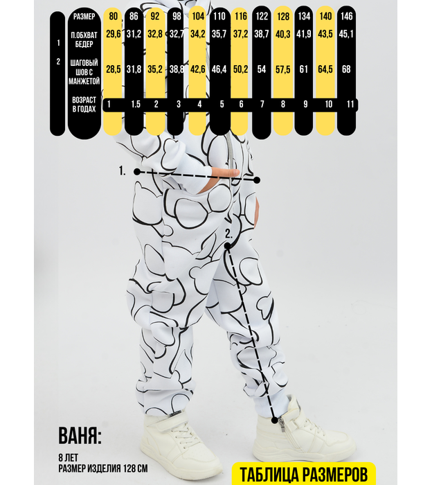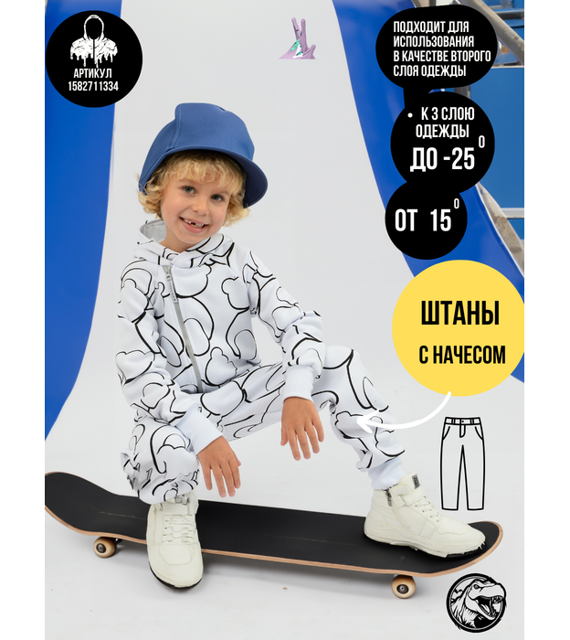 Штаны, Футер, Мишки на белом, арт. 802Ф
